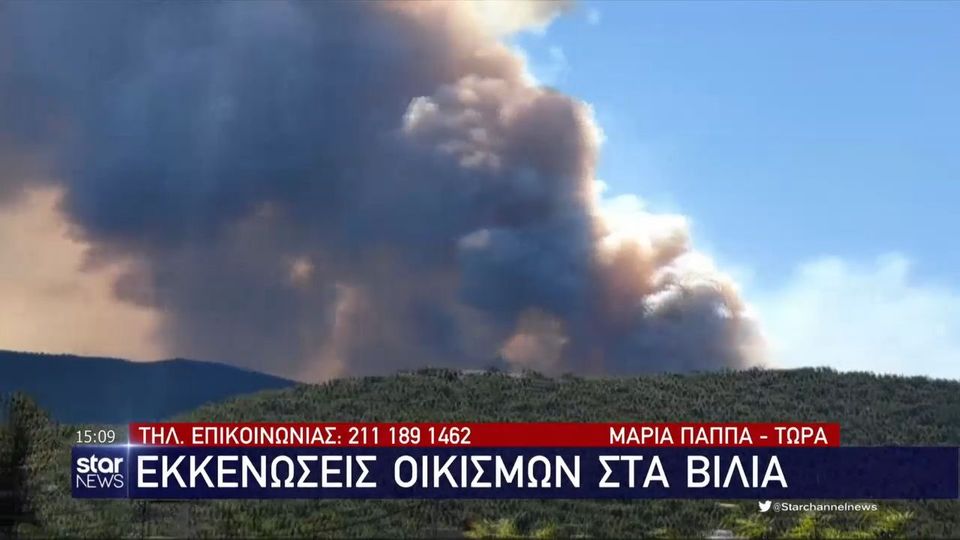Δύο ακόμη οικισμοί εκκενώνονται στα βίλια αττικής, όπου έχει ξεσπάσει σήμερα φωτιά.